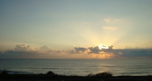 Ocean glitters as the sun comes up